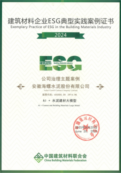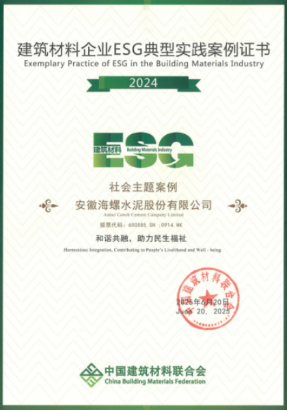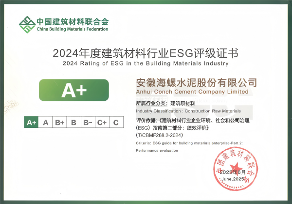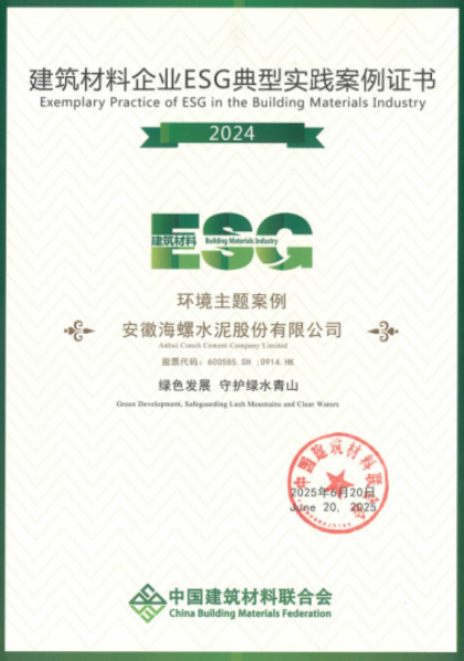本次榮獲多項榮譽(yù)體現(xiàn)了建材行業(yè)對公司ESG治理和實踐的高度認(rèn)可,也彰顯了公司推動行業(yè)低碳綠色轉(zhuǎn)型的標(biāo)桿示范作用。未來,海螺水泥將推動ESG理念與公司生產(chǎn)經(jīng)營深度融合,努力提升環(huán)境、社會、經(jīng)濟(jì)綜合價值創(chuàng)造能力,堅定不移走生態(tài)文明與企業(yè)發(fā)展共贏之路,改造提升水泥產(chǎn)業(yè),培育壯大綠色新興產(chǎn)業(yè),以產(chǎn)業(yè)含“綠”量提升發(fā)展含“金”量,引領(lǐng)水泥行業(yè)在綠色低碳發(fā)展的道路上砥礪前行,助力美麗中國建設(shè)。