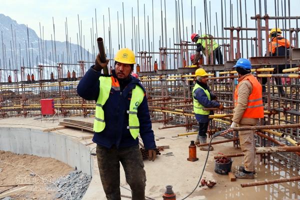 巍巍雪山下,廣闊原野上,地處中亞腹地的烏茲別克斯坦塔什干海螺項(xiàng)目施工現(xiàn)場(chǎng),塔吊林立,機(jī)器轟鳴,近900名工人正熱火朝天地奮戰(zhàn)在施工一線。項(xiàng)目主體工程多數(shù)框架已交安,設(shè)備物資到貨3萬(wàn)方,回轉(zhuǎn)窯托輪吊裝就位,煤立磨完成主體安裝,宿舍樓結(jié)構(gòu)封頂,主廠區(qū)初見(jiàn)雛形。