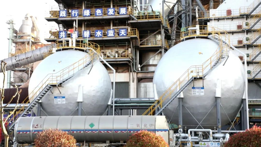 經(jīng)過(guò)捕集、純化后的二氧化碳液體,就儲(chǔ)存在這兩個(gè)球形儲(chǔ)存器中。(羅廣心 攝)
