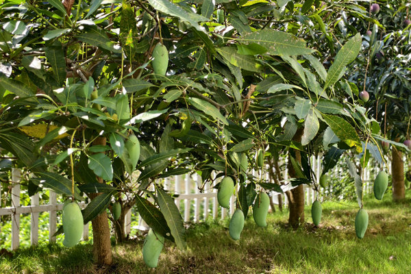 果園內(nèi),各色芒果如同珍寶綴滿枝頭:貴妃芒雍容華貴,金煌芒燦爛輝煌,象牙芒頎長(zhǎng)優(yōu)雅,臺(tái)農(nóng)質(zhì)樸可愛(ài),桂七則散發(fā)著獨(dú)屬于百色土地的濃郁醇香。采摘隊(duì)伍穿梭其間,枝葉間“咔嚓”聲此起彼伏,熟透的果實(shí)應(yīng)聲而落。籃筐漸漸豐盈起來(lái),仿佛裝滿了整個(gè)夏天濃縮的甘甜。有人踮起腳尖小心翼翼,有人架起梯子攀援而上,還有人默契配合,接應(yīng)高處摘下的果實(shí)——人聲與果香交織纏繞,讓果園霎時(shí)成了歡樂(lè)的流動(dòng)盛宴。
