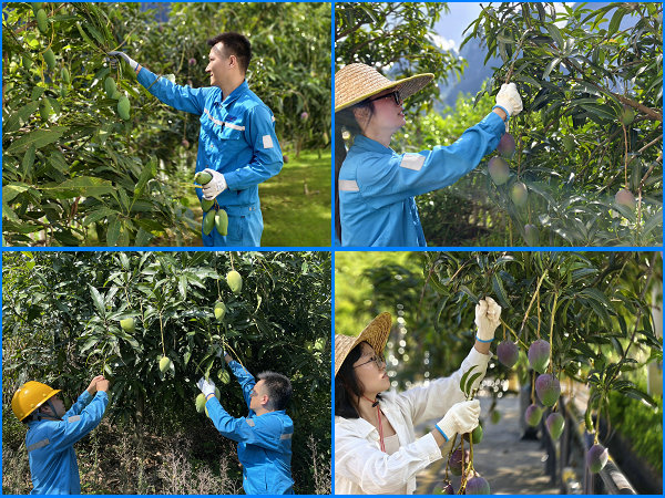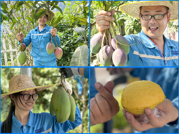 “瞧瞧這大家伙,一個(gè)頂倆!比我的臉還大!”一位員工提起起沉甸甸的金煌芒,笑容如芒果般飽滿。旁邊經(jīng)驗(yàn)豐富的“芒果之鄉(xiāng)”田東縣的同事邊剪邊傳授:“蒂把留一小截,果子更耐放?!毙录尤氲哪贻p員工起初動(dòng)作略顯生澀,然而幾番嘗試后也漸入佳境,笨拙卻認(rèn)真,汗水混著笑意,映著陽(yáng)光。銷(xiāo)售處的馮姐捧著自己摘下的貴妃芒,嗅著那獨(dú)特的馥郁香氣,不禁感嘆:“這香氣,比賬本上的數(shù)字更令人心甜呢!”