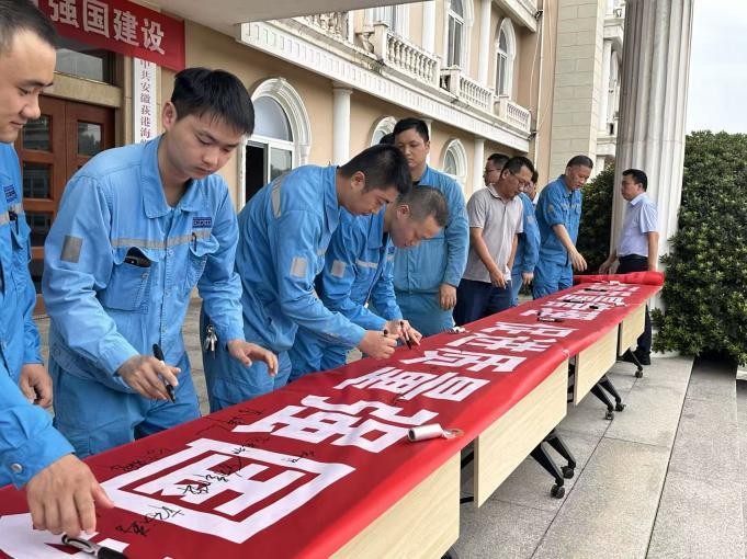 全員動(dòng)起來(lái),質(zhì)量強(qiáng)起來(lái)。9月1日,公司辦公樓前已是人頭攢動(dòng)。在公司領(lǐng)導(dǎo)班子的帶領(lǐng)下,各部門(mén)負(fù)責(zé)人與員工代表精神抖擻,共同在“加強(qiáng)全面質(zhì)量管理 促進(jìn)質(zhì)量強(qiáng)國(guó)建設(shè)”的橫幅上鄭重簽名承諾。一筆一劃,標(biāo)志著荻港海螺質(zhì)量月活動(dòng)隆重開(kāi)幕。