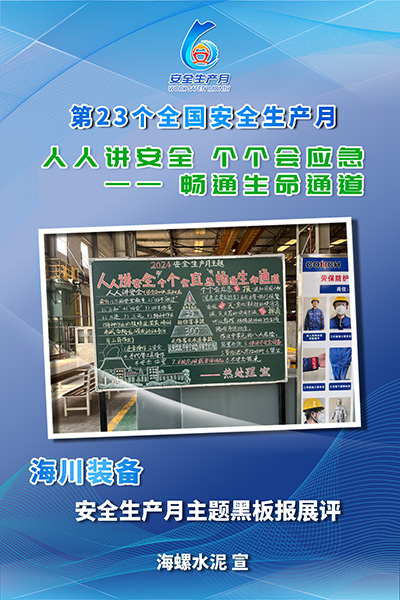 今年6月是全國第23個“安全生產(chǎn)月”,主題為“人人講安全、個個會應(yīng)急——暢通生命通道”。期間,海螺水泥緊扣宣傳貫徹習近平總書記關(guān)于安全生產(chǎn)的重要論述,開展了“6.16安全宣傳咨詢?nèi)铡薄踩R競賽、實操技能培訓(xùn)等一系列形式多樣、全員參與的活動,持續(xù)提升員工的安全意識和應(yīng)急避險能力,推動高質(zhì)量發(fā)展與高水平安全良性互動。各單位工作開展得怎么樣,大家通過一組海報來“圍觀”吧!