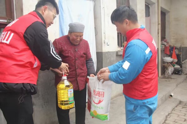 鳳凰山海螺暖心行動,組織志愿者們赴公司周邊村莊看望慰問老人,為他們送去米、油等生活物品。