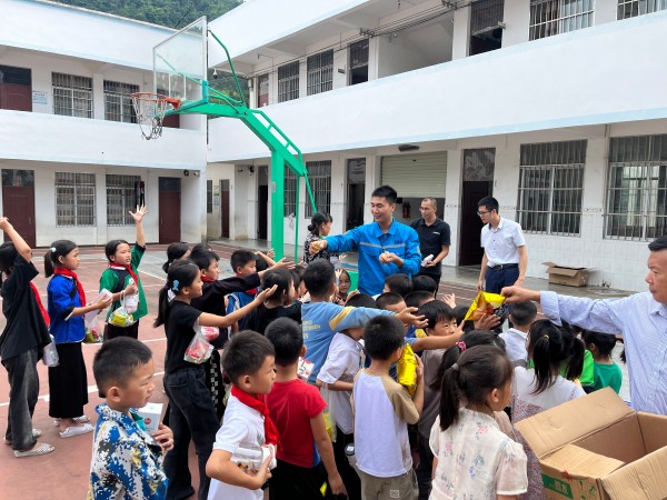 騰越水泥公司組織志愿者們前往屬地小學(xué)開展“童心筑夢 愛暖明天”六一兒童節(jié)關(guān)愛慰問活動,為小朋友們送去學(xué)習(xí)用品和節(jié)日祝福。
