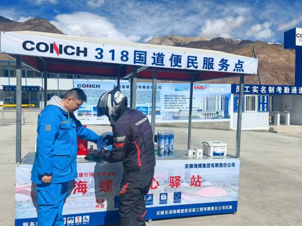 海螺建安依托承建的白瑪鎮(zhèn)珠巴村鄉(xiāng)村振興物資中轉(zhuǎn)站項目部,在318國道西藏八宿段建設(shè)了海螺愛心驛站,免費向游客提供休憩、飲用水、吸氧、醫(yī)療急救用品、手機(jī)充電、如廁等暖心服務(wù)。