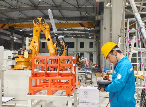 海螺中南機器人調(diào)試工程師朱露在廠房對工業(yè)機器人進行點位調(diào)試和程序測試,他說:專業(yè)技能為矛,嚴謹態(tài)度為盾,作為一名科技工作者,在沖刺年度目標任務(wù)時要爭出人生能有幾回搏的決心和毅力。