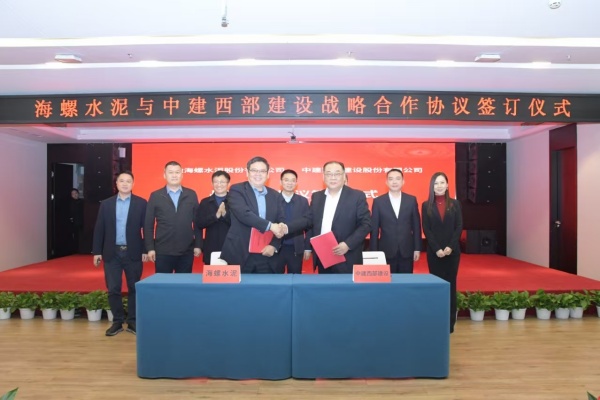 2025年2月17日,海螺水泥與中建西部建設(shè)在成都舉行戰(zhàn)略合作協(xié)議簽約儀式。海螺水泥黨委書記、總經(jīng)理李群峰與中建西部建設(shè)黨委副書記、總經(jīng)理白建軍代表雙方簽署協(xié)議。海螺水泥副總經(jīng)理、董事會(huì)秘書虞水,中建西部建設(shè)副總經(jīng)理李明杰,財(cái)務(wù)總監(jiān)、首席合規(guī)官、總法律顧問邵舉洋等出席簽約儀式。