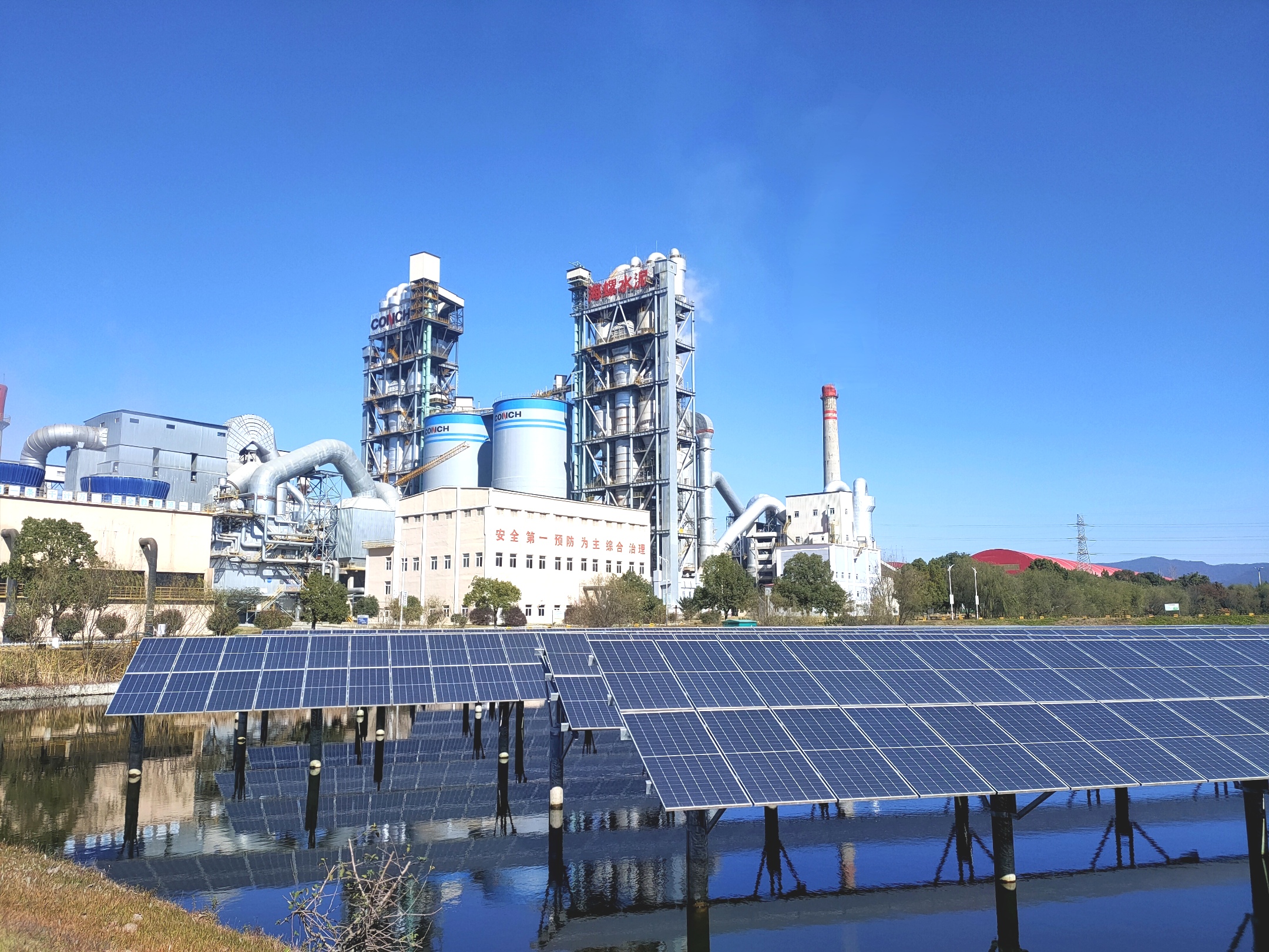 安徽宣城海螺水泥有限公司成立于2004年4月,是安徽海螺集團(tuán)公司旗下的安徽海螺水泥股份有限公司全資子公司。項(xiàng)目已建設(shè)2條日產(chǎn)5000噸新型干法熟料生產(chǎn)線(xiàn)和年產(chǎn)320萬(wàn)噸的水泥粉磨系統(tǒng),主廠(chǎng)區(qū)占地1050畝。一期建設(shè)兩條日產(chǎn)5000噸熟料水泥生產(chǎn)線(xiàn)分別于2007年7月29日、9月9日點(diǎn)火投產(chǎn),年產(chǎn)160萬(wàn)噸水泥粉磨系統(tǒng)分別于2007年8月24日、10月6日投入運(yùn)行;配套建設(shè)年吞吐量300萬(wàn)噸的鐵路專(zhuān)用線(xiàn)于2008年1月23日順利通過(guò)竣工驗(yàn)收;18000kW純低溫發(fā)電系統(tǒng)于2008年3月1日并網(wǎng)發(fā)電。二期建設(shè)年產(chǎn)160萬(wàn)噸水泥聯(lián)合粉磨系統(tǒng),兩臺(tái)聯(lián)合水泥磨分別于2017年3月18日、4月11日投入運(yùn)行。公司光伏項(xiàng)目一期總裝機(jī)容量15.62MW,二期總裝機(jī)量3.48MW,分別于2019年9月、2022年10月建成并網(wǎng),項(xiàng)目占地面積約414畝,采用“自發(fā)自用、余電上網(wǎng)”的發(fā)電模式。