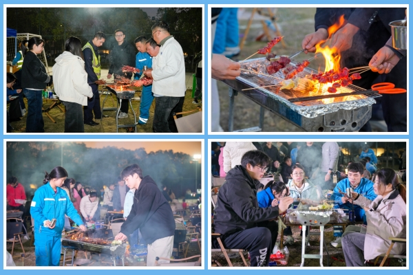 你看這邊的燒烤區(qū),雖伴著冬季傍晚的微涼,卻處處洋溢著火熱的氣息。員工們自發(fā)組成燒烤小隊(duì),分工協(xié)作、默契配合,有人熟練翻轉(zhuǎn),精心控制火候讓食材能夠達(dá)到最佳風(fēng)味;有人熱情分發(fā)調(diào)料和飲品,不時(shí)揮舞著熒光棒配合樂隊(duì)的演出節(jié)奏。平時(shí)忙于各自崗位的員工都在此刻化身為“燒烤大師”,在炊煙裊裊與歡聲笑語(yǔ)中,彼此間的距離迅速拉近,交流也變得自然而融洽。