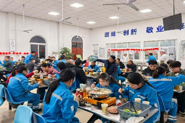 趣味競賽結(jié)束后,暖胃暖心的特色小火鍋環(huán)節(jié)溫馨開啟。鮮香濃郁的鍋底、琳瑯滿目的食材,讓員工們在寒冬中感受到了家的溫暖與企業(yè)的關(guān)懷。大家圍坐一桌,舉杯暢談,分享著工作中的趣事與生活中的感悟,每位員工也依次分享了新年愿望,現(xiàn)場其樂融融,暖意濃濃。與此同時,廠區(qū)內(nèi)早已換上了“新年盛裝”,紅燈籠、新年窗花等裝飾錯落有致,處處洋溢著喜慶祥和的節(jié)日氛圍,讓每一位員工都能沉浸式感受元旦的喜悅。