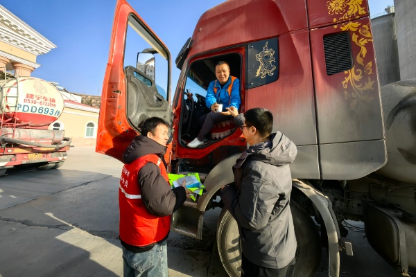 “跑運輸這么多年,第一次在廠區(qū)喝到熱姜茶,渾身都暖和了!”冬季平?jīng)龅貐^(qū)低溫時間長,對于長途駕駛來說,也有諸多不便,平?jīng)龊B莸呐呐e措讓來自陜西的司機師傅倍感親切。不僅如此,公司為錯過“飯點”的司機還貼心準備了“暖心餐”?!拔铱匆呀?jīng)都大中午了,本來想在廠外面隨便找個面館湊活一頓,沒想到公司還為我們準備了午飯,很開心也很意外”一位來自慶陽的拉運司機笑著說道。